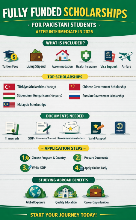 Getting a fully funded scholarship after intermediate is challenging but achievable. Governments, universities, and international organizations offer these opportunities to help students from developing countries like Pakistan.